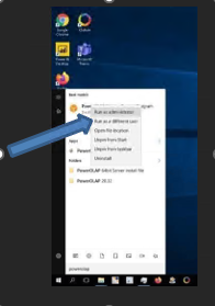 12. Go to the Windows Start button and start typing PowerOLAP Service Control Program. IMPORTANT: Right-click and Run as Administrator (as shown in the next image).