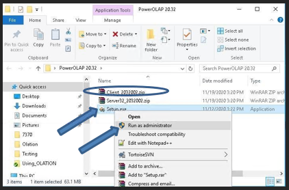 - Right-click on the setup.exe; select Run as Administrator (see following image).